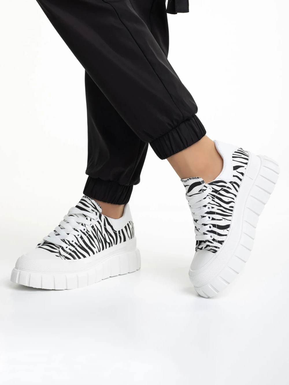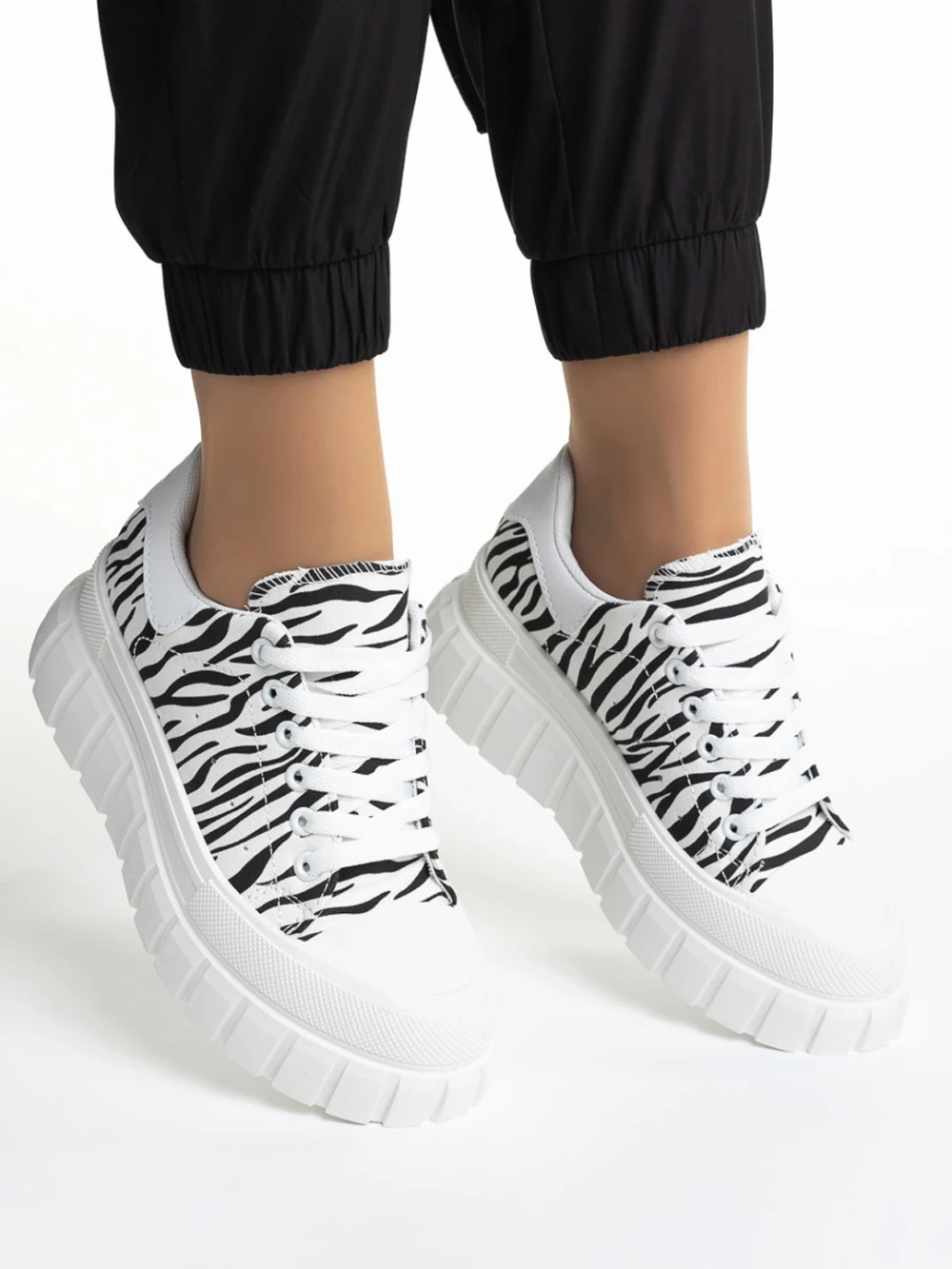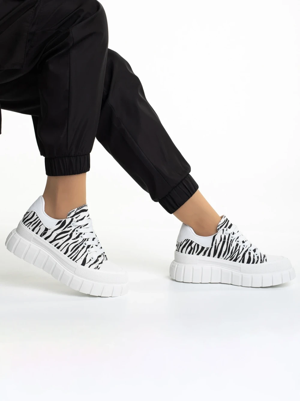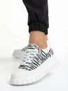 Tenisi dama albi cu negru din material textil Abon Detalii produs